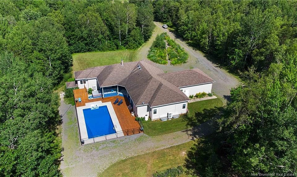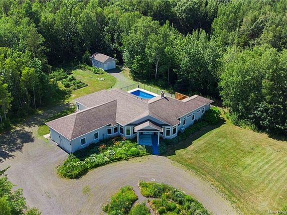 EXCLUSIVE LUXURY RETREAT ON 4 ACRES! ENJOY PRIVATE POOL & HOT TUB Tucked away on four private acres just minutes from Riverview, this stunning 5,000 sq. ft. custom-built executive bungalow WITH DOUBLE ATTACHED AND DETACHED GARAGE offers the perfect blend of luxury, comfort, and privacy. Surrounded by mature trees and beautifully landscaped gardens, the property welcomes you with Soaring 10.6-foot ceilings in the main living areas and 9.6-foot ceilings in the wings create a spacious, airy atmosphere, enhanced by transom windows, natural stone tile, coffered ceilings with pot lights, propane fireplaces with custom mantels, and detailed crown moldings. The open-concept layout is anchored by a chef’s dream kitchen, complete with a large quartz island, rich redwood custom cabinetry, and a hidden pantry kitchen with sink, stove and microwave—ideal for entertaining, holiday cooking and meal prep. Designed for both function and flow, the home features abundant natural light, especially in the breakfast nook and cozy reading room. The private primary suite offers a true retreat with his and hers walk-in closets, a spa-like 5-piece ensuite, a soaker tub, and direct access to the Luxurious Backyard, IN GROUND POOL, wet bar, hot tub, and spacious seating area perfect for summer nights. The fully finished walk-out lower level has been completely renovated and is perfectly suited for an in-law suite, offering two bedrooms, a full kitchen, bathroom, and living area. THIS ONE IS A MUST SEE!