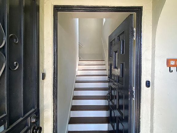 Old world charm fills this very light, bright 2 bedroom/1 bathroom Spanish Duplex top floor unit. Spacious and open living room & attached dining room has high coved ceilings and French windows. Beautiful kitchen with colorful tile backsplash, breakfast room and laundry machines included. Bedrooms are generously sized and filled with natural light. Dining room has French doors that lead out to small porch with views to the south. Property is completely hedged and gated with code access for ultimate privacy. Hardwood floors throughout. Large closet for ample storage is attached to the living room. Conveniently located, just steps to Sprouts, Target and close to Mid-Wilshire and Larchmont for shopping, dining, and entertainment. Easy access to DTLA, Culver City, Hollywood, West Hollywood, Beverly Hills and freeway. Low traffic residential part of Highland! Perfect Mid-City living! Owner pays for water. Tenant responsible for gas and electric.