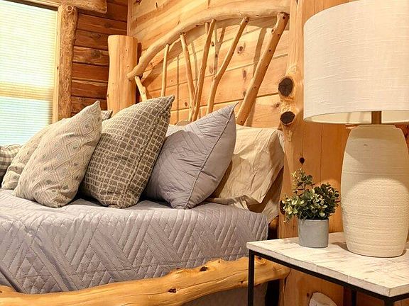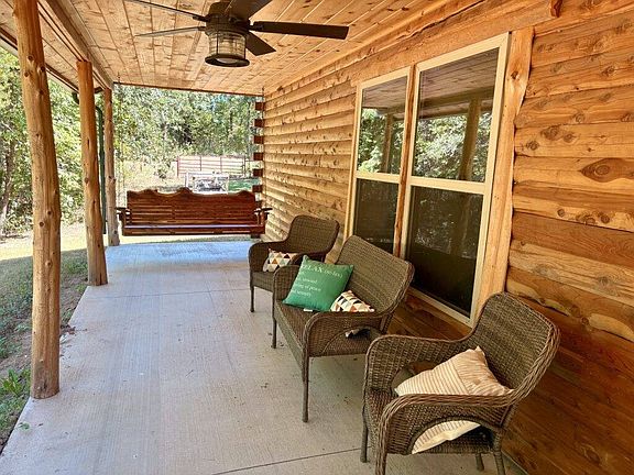 Escape to the perfect blend of rustic charm and modern comfort in this stunning 2-bedroom, 2-bathroom true Eastern Red Cedar log home built in 2022. Nestled in the heart of Longtown, this home offers 1,492 sq. ft. of thoughtfully designed living space, ideal as a full-time residence, vacation retreat, or investment property. Step inside to soring wood-beamed ceilings, an open-concept living area, and plenty of natural light that highlights the warm log finishes. The kitchen boasts modern appliances, ample counter space, and stylish cabinetry - perfect for hosting or cozy evenings in. The spacious bedrooms each feature private baths, creating comfort and privacy for family or guests. Outside, enjoy the peaceful setting with room to relax, entertain, or simply take in the fresh Longtown air. The Quonset 30X40 detached shop is perfect for storing your lake toys (Equipped with 220/110 welding wiring). The Property expands over 3 acres and includes a two-car carport, one 12X16 Derksen lofted outbuilding and one 12X16 Derksen building with washer/dryer hookups, air, and water. The property also boasts a 20X30 RV pad with full hookups. Located in what is known as the "Triangle area", the sweet spot for fishing over the entire lake and one mile to Oak Ridge Recreation Area's boat ramp.5 miles to downtown Eufaula. Convenient to Checotah, Muskogee and Tulsa. Fort Smith is 90 minutes, OKC 2 hours, and Dallas 3.5 hours. Don't miss this incredible opportunity to own a piece of paradise on 9A. Schedule your viewing today to experience the magic of this log cabin home!
