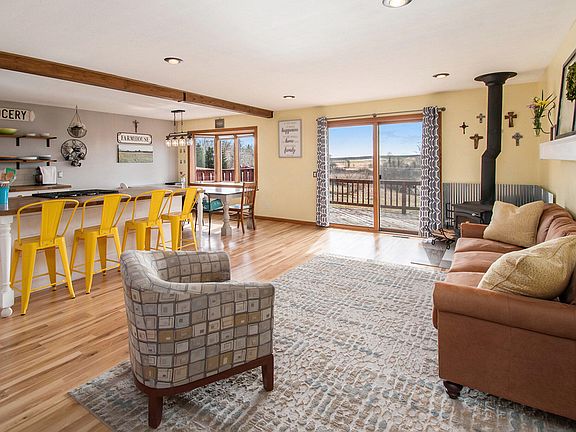 Incredible opportunity to own 10 acres just outside Grant! This sprawling walkout ranch has been tastefully remodeled, featuring a main-floor primary wing with a brand-new full bath and private sitting area. The country kitchen offers new appliances, ample prep space, and opens up to a dining area and a cozy living room with a wood stove and slider to a large deck overlooking the property. The main floor also includes a second bedroom with a walk-in closet and full bath. The basement boasts three more bedrooms, a full bath, a spacious rec room that shares a double sided gas fireplace with a walk out living room, and a huge laundry/exercise room with its own sliding glass door. Perfect for a hobby farm, hunting, and outdoor exploration along sand creek. property has trails and fruit trees.