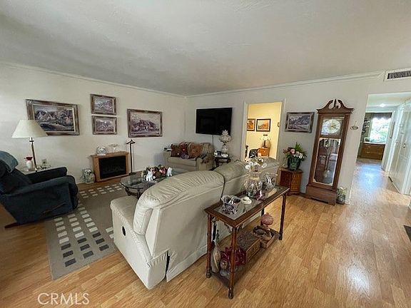(Mutual 15-2-B) Oh the possibilities ... "RARE" DOUBLE ATRIUM - Highly sought after and only available in Mutual 15!! This lovely home is great the way it is or you can personalize it and make it your own. Two Bedrooms, 1.5 bathrooms, Plantation Shutters, Wood Look Floors, Central Heat/Air, Dining Room, Upgraded Kitchen with Corian Counters, Coffer Ceiling and Breakfast Bar that overlooks the large living room! The Atrium has been enclosed that give an extra room for an office, hobby room or even a guest room, plus the patio has been enclosed, allowing for indoor space - but still a patio with a tile floor and built-in storage cabinet. The location is perfect on a courtyard/greenbelt, has a wonderful breeze and close to the front gate! One Assigned Carport in Building #1; Space #40.
