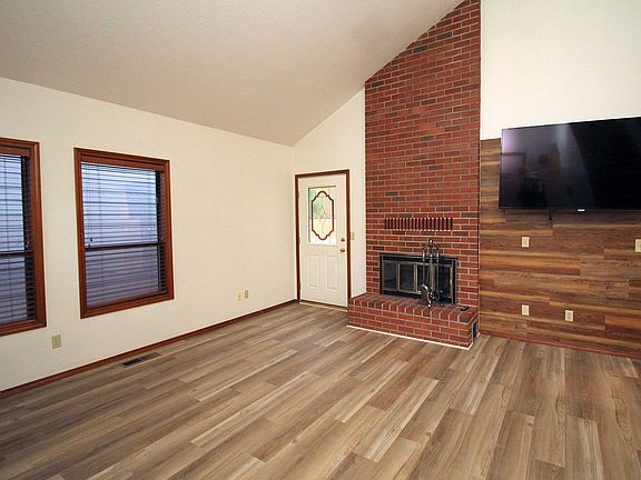 Brick wood-burning fireplaceNewer appliancesFormal dining roomCool architectural featuresGas rangeSoaring vaulted ceilingsWood accent wall