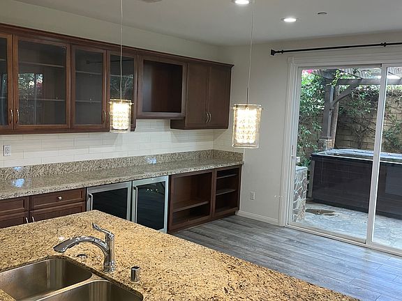 The backyard is like a tranquil retreat. It was all professionally designed . It has a jacuzzi and gas fire pit, custom lighting, beautiful landscape, & a tranquil fountain. All a perfect setting to unwind & enjoy.