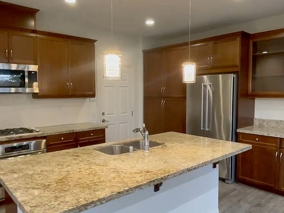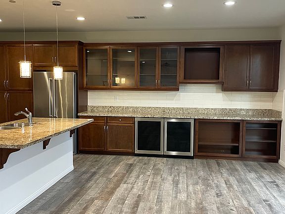 Welcome to this beautifully upgraded 11yr old, former model home, in Canterbury Lane. From the moment you walk in, it's a stunner! Huge picture windows looking out to the professionally designed private backyard. Gorgeous plank distressed wood like "tile" floors in nearly the entire home. You have a spacious amazing chef's kitchen & dining area, with a granite island, two beverage coolers, ( one for wine) stainless steel appliances, & brand new dishwasher. Custom cabinets galore , a large pantry, and all with sliding drawers. There's also under cabinet lighting. The living room is huge, open concept, perfect for entertaining & all family gatherings. There's also recessed lighting & a ceiling fan. There is a guest bathroom downstairs. There is also Surround sound throughout .