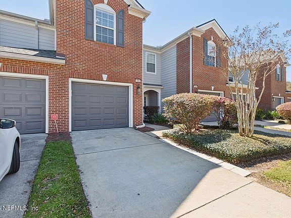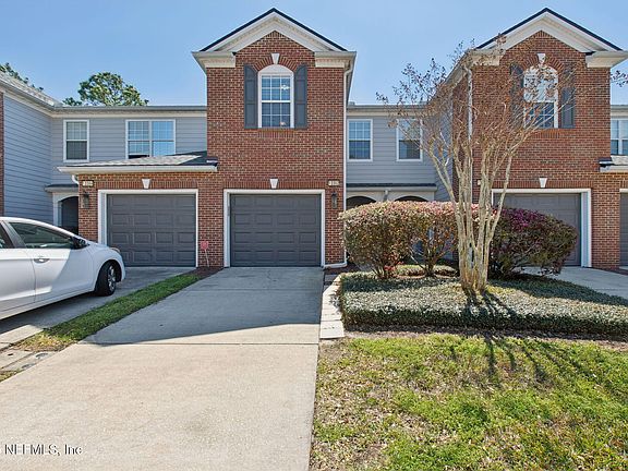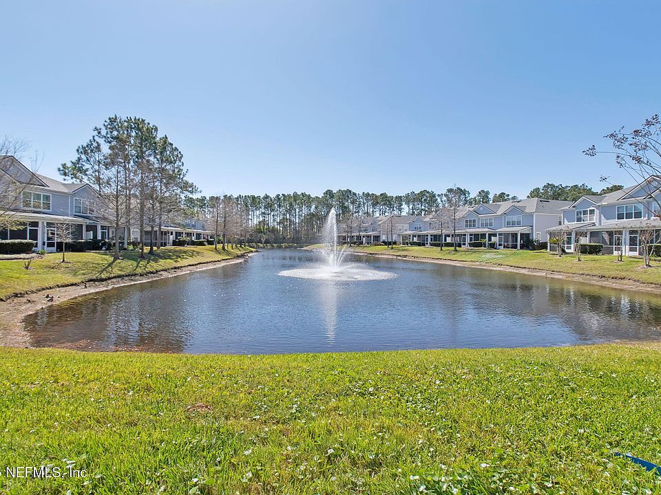 Now is the time to make this water view, move-in ready unit yours! Ideal primary or investment property w/LOW HOA fees of $258/month! This spacious 3BR/2.5 BA lives large. Step inside to the open eat-in kitchen w/wood cabinetry, corian counters, stainless appliances & pantry closet. This space flows nicely to the sunny dining/ living room combo w/lux vinyl plank wood floors that leads to the screened-in lanai overlooking the pond & fountain. A half bath is also located on the 1st floor and door from kitchen to the single car garage. Heading upstairs, there are beautifully appointed lux vinyl plank wood stairs that brings you to 3 bedrooms, 2 baths & an upstairs laundry closet. The primary suite has lots of light, roomy walk-in closet & a spacious bath w/double vanities and tub/shower combination. 2 additional bedrooms have access to 2nd full bath. Gated community w/clubhouse & pool. Prime location just minutes to the beach, Mayo Clinic, UNF & St. Johns Town Center!