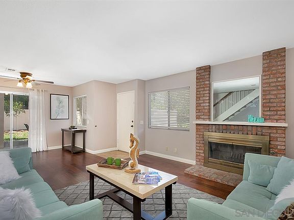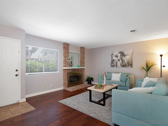 You won't find a larger yard available in Country View! Lovely, private, vinyl fenced backyard with large grass area, patio, & mature shade trees to relax under on warm summer days. Spacious bedrooms & open floor plan, central A/C, two-car garage, & storage shed. Enjoy the cozy floor-to-ceiling brick fireplace in one of the largest floor plans in the complex! Beautifully landscaped Country View complex features a sparkling pool & well manicured grounds. Located within the excellent, Poway School District!