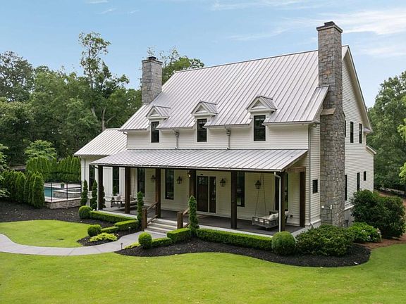 Welcome to your own private retreat in the heart of Milton. Set on 2.5 beautifully wooded acres behind a gated entry, this custom-built modern farmhouse by Steve Powell Homes combines timeless craftsmanship with the laid-back luxury of resort-style living. With a heated saltwater pool and spa, outdoor fireplace, and a backdrop of century-old oaks, this home offers the kind of privacy and setting that's getting harder to find. From the moment you step onto the front porch, framed by cedar beams, gas lanterns and tongue-and-groove ceilings, you'll feel the attention to detail that sets this home apart. Inside, 12-foot ceilings, reclaimed Pennsylvania barn wood floors, and natural light at every turn create a bright, welcoming feel. The fireside family room opens into a chef's kitchen with quartzite countertops, a high-end appliance package, large center island, and walk-in pantry. Accordion-style doors lead to a vaulted, wood-lined lanai-an all-seasons space with a fireplace that flows effortlessly into the pool and patio area. The main-level primary suite is a true escape, featuring a spa-like bath with heated floors, a soaking tub, dual showerheads, and a custom walk-in closet with a packing island. Just off the closet, the laundry room is a workhorse-with space for two washers and two dryers, tons of cabinetry, a work island, built-in desk, and drop zone. Whether you're managing a busy household or prepping for travel, this space makes life easier. Upstairs, you'll find four generously sized en suite bedrooms, each with custom walk-in closets, plus a versatile bonus room and a cozy reading nook that's perfect for quiet moments or homework hangouts. The finished terrace level adds even more to love-a full home theater, a flex space that works well as a gym or guest suite with its own full bath, and a fourth-car garage that easily doubles as a workshop or extra storage. Need more room to spread out? Above the main garage, an additional finished space offers endless potential-whether it's an in-law suite, a game room, or your go-to spot for entertaining. From the Control4 smart home system and full-house generator to the winding drive, professional landscaping, and extra parking pads, no detail has been overlooked. Zoned for top-ranked Cambridge High and just minutes to Downtown Alpharetta, Avalon, and GA-400, this property offers the rare mix of privacy, convenience, and laid-back luxury that's getting harder to find.