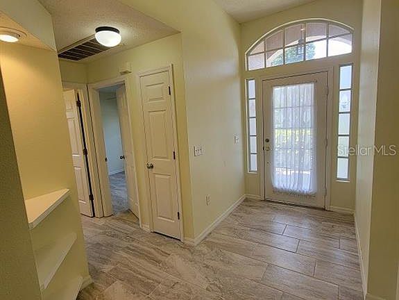 Don't miss this stunning 3-bedroom, 2-bathroom home nestled on an oversized, beautifully landscaped corner lot in a peaceful golf course community—just minutes from the Suncoast Parkway for easy commuting! Inside, you’ll find a spacious and inviting open layout with vaulted ceilings, split bedrooms, and stylish 12x6 ceramic tile flooring throughout. The neutral color palette creates a clean, modern backdrop ready for your personal touch. The generously sized kitchen is a standout feature, offering ample cabinetry, stainless steel appliances, a built-in desk, pantry, and a raised breakfast bar. A separate formal dining area sits just off the kitchen for added convenience. Two guest bedrooms and a full bath are located at the front of the home, while the private owner’s suite is tucked away at the rear. The primary suite features a large walk-in closet and an en-suite bath with a soaking tub, separate shower, and dual vanities. An inside laundry room is off of the 2 car garage. Step outside to the tiled screened patio, accessible from the living room, kitchen, or master bedroom—ideal for outdoor entertaining. Roof and hot water heater replaced in 2022! Low HOA fees with ample community amenities (clubhouse, pool, tennis courts and more!)