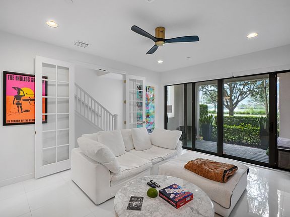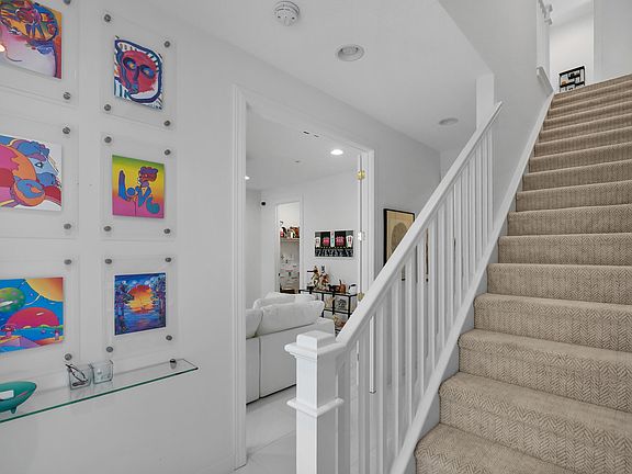Stunning 4 Bedroom, 3.1 Bath Townhome in the Heart of Alton - 2,840 Sq Ft of Luxury Living. Welcome to this beautifully upgraded 3-level townhome offering modern luxury and effortless living in the highly sought-after Alton community of Palm Beach Gardens. With 2,750 sq. ft., 4 spacious bedrooms, 3.1 baths, and 2 private balconies overlooking serene lake views with fountains, this home blends style, comfort, and convenience. Step inside to find sleek white porcelain tile floors, recessed lighting, and designer finishes throughout. The ground level features glass French doors, built-in floating entry shelf, and a full bath that feels like a spa retreat. The bath is complete with frameless glass shower, upgraded tiles, a custom quartz-topped vanity, one-piece toilet, a backlit LED mirror, and all new Moen fixtures. The ground level also includes smart additions including push-button blackout shades, a modern ceiling fan, recessed lighting, and a central security keypad. The main floor is an entertainer's dream with a chef-inspired kitchen boasting marble counters, a new Wolf cooktop with commercial-style hood, built-in wall oven and microwave, three-door refrigerator, sleek cabinetry with modern pulls, and a convenient built-in pantry. A stylish half bath features a custom floating vanity with quartz counter, one-piece toilet, and backlit LED mirror. The open living area showcases custom built-in shelving with a rich walnut panel backdrop, designed to frame the mounted 65" flat screen for a sleek, modern finish. The master suite is a true retreat with push-button blackout shades, an 85" flat screen, ceiling fan, recessed lighting, and a central alarm panel. The master bathroom features a spa-like design with custom tile, dual marble-topped sinks, all new Moen fixtures, a frameless glass shower enclosure, and a space with a one-piece toilet. The master closet is fully built-out with drawers, shelves, and hanging space for optimal organization. The upstairs main bathroom has been fully renovated with a custom vanity, quartz countertop, LED backlit mirror, premium frameless glass shower enclosure, and all new Moen fixtures for a modern, spa-like feel. Bedroom 2 features built-in closets, 2" blinds, and a 55" flat screen TV, while Bedroom 3 offers built-in closets, 2" blinds, a custom quartz makeup table and desk, and a 50" flat screen TV, combining functionality with style for comfortable living. Additional highlights of this home include all-new premium pin-dot style carpet on the stairs and throughout, a central security system with cameras throughout, and a garage with epoxy flooring, ceiling storage racks, and an automatic door opener with outside keypad. The home also features a new water pump unit, hose hookups at both the front and rear of the property, and two private balconies with electric outlets that overlook beautiful lake views with fountains. Upstairs, the laundry area is thoughtfully designed with built-in cabinets and a new front-load washer and dryer, combining style and functionality throughout the home. Beyond the home, Alton offers an unmatched lifestyle. Residents enjoy a resort-style clubhouse with fitness center, kids' playroom, lap pool, playground, sports courts, and endless green spaces. Walk or bike to Alton Town Center for dining, shopping, and entertainment. Just minutes from beaches, golf, Palm Beach Gardens Mall, and top-rated schools including Marsh Pointe Elementary, Watson B. Duncan Middle, and Dwyer High. This home is the perfect combination of modern design, smart features, and community living. It is move-in ready and waiting for you!
