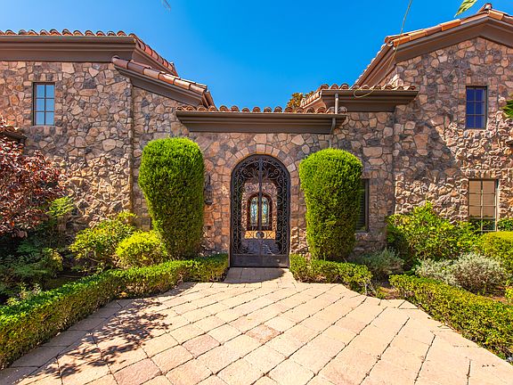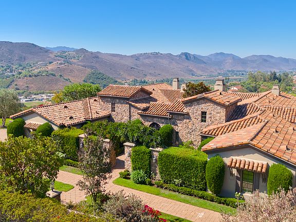 Nestled within an exclusive gated community, this residence offers the perfect blend of privacy, sophistication, and breathtaking views. Framed by lush landscaping and sweeping panoramas, it's a serene retreat designed for both relaxation and entertaining. Enter through a gated courtyard complete with a cozy fireplace and sitting area a tranquil welcome before stepping inside. The home opens to a bright formal living space where French doors flow seamlessly to an expansive patio, infinity-edge pool, and backyard with cinematic mountain vistas. The chef's kitchen is a true centerpiece, featuring a generous island, Viking and Miele appliances, a large walk-in pantry with an additional refrigerator, and a butler's pantry that connects to the elegant formal dining room. An informal dining nook transitions into the spacious family room, where soaring ceilings and walls of French doors showcase the striking pool and mountain views. A custom wet bar with wine refrigerator elevates the space for gatherings. A private guest or staff suite, complete with en-suite bath, is tucked just off the kitchen. The grand primary suite is a retreat of its own, offering a fireplace, reading nook, and panoramic views ideal for a lazy morning or sunset unwind. The spa-like bath features dual vanities, dual walk-in closets, a clawfoot soaking tub, oversized shower, water closet with bidet, and exquisite finishes throughout. Three additional en-suite bedrooms provide comfort and flexibility, while a fourth serves perfectly as a home office. For entertainment, a secluded cinema room tailored with plush seating offers the ultimate at-home movie experience. Outdoors, the more than 1.5-acre grounds are designed to impress, highlighted by the infinity pool that appears to melt into the horizon. A long private driveway leads to a three-car garage with Tesla charger. This home isn't just a residence it's a lifestyle, combining luxury, privacy, and stunning natural beauty