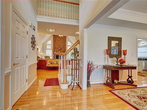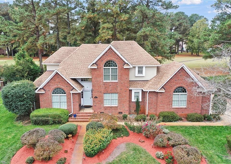 Get ready to enjoy this gorgeous two-story home with primary bedroom suite on the first floor. Stunning views of the Greenbrier Country Club Golf Course 7th Tee. Enjoy the view on an oversized deck, surrounded by beautiful greenery. Stunning family/great room with herringbone brick fireplace; open floor plan w/gleaming hardwood floors. Large eat-in kitchen with custom cabinets, stainless steel appliances, black pearl granite countertop and large center aisle; breakfast nook, overlooks the deck and golf course. Large formal living room overlooks an office with fireplace, custom bookshelves and glass doors. Primary bedroom is spacious with a very large walk-in closet, and overlooks the golf course. Greenbrier Country club is in close proximity. Centrally located in the heart of Chesapeake, minutes from shopping, schools, interstate, and hospitals.