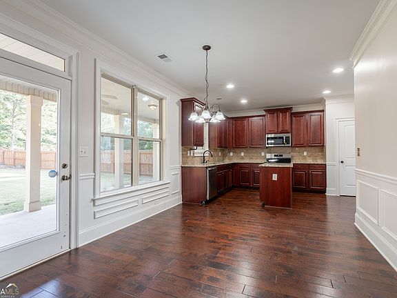 Stunning 4-bedroom, 2.5-bath home featuring full interior paint, new carpet, and a new Stainless Steel appliance package including range, microwave, and dishwasher. Enjoy elegant details throughout with a formal dining room boasting coffered ceilings, wainscoting, and a beautiful spindle iron staircase. The kitchen offers a large island, granite countertops, and hardwood floors that flow seamlessly through the main level. Step outside to a spacious fenced backyard with a covered patio-perfect for relaxing or entertaining.