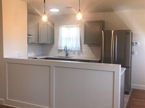 Remodeled kitchen with modern finishes and ample cabinet space. Gleaming wood flooring throughout for warmth and elegance Ceiling fans and window treatments included for year-round comfort