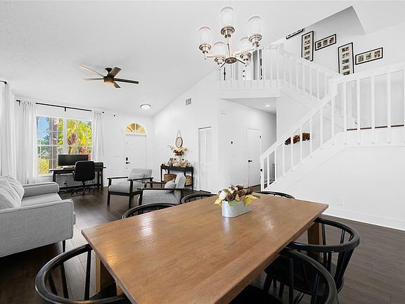 Welcome to this stunning 2-story corner-lot home featuring 3 bedrooms, 2.5 baths, and a 2-car garage. Step into a bright, inviting living and dining area with soaring ceilings that instantly impress. The spacious kitchen offers granite countertops, white cabinets, and stainless steel appliances, flowing seamlessly into the cozy family room. The primary suite is conveniently on the first floor, with two bedrooms upstairs. Enjoy a large, fully fenced yard perfect for relaxing or entertaining. Accordion shutters throughout. Community amenities include a pool, tennis court, playground, and low HOA. Minutes from beaches, dining, shopping, and golf, this home delivers excitement and lifestyle!