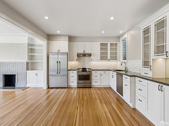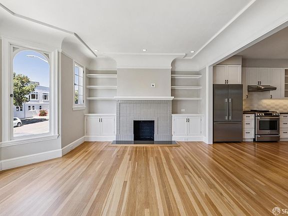 Please do not text. Please email showing requests with address as subject. Luxurious Marina Edwardian Flat. Arched windows and period decor w/ modern, stunning, and high-end finishes. This home is well appointed w 3 true bedrooms/2.5 baths. Open concept living, dining, and kitchen. HDWD floors throughout. Primary bedroom offers a balcony, spcious spa-like bathroom, south facing, serene garden setting, and walk-in closet. Jack and Jill style bathroom between secondary bedroom / hallway. Generous storage and closets with custom built-ins. Full size laundry in unit. Side access to shared yard and garage. One car tandem parking included.