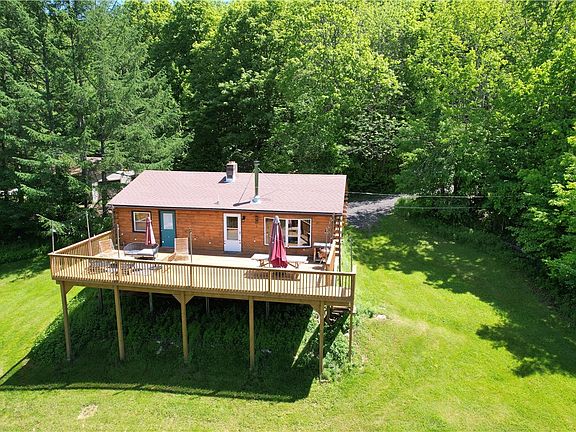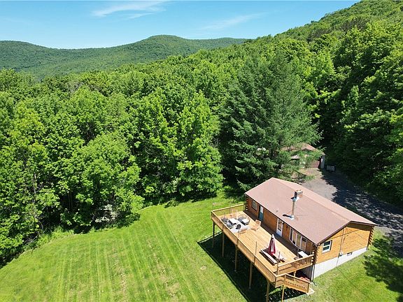 Escape to your PRIVATE SANCTUARY with this immaculate three-bedroom, two-bathroom LOG HOME nestled on 9 acres of SERENE, PROTECTED LAND. This picturesque property offers unparalleled PRIVACY and TRANQUILITY, perfect for those seeking a retreat from the hustle and bustle. The home features an OPEN CONCEPT living/dining and kitchen area with RUSTIC COUNTRY CHARM. Open BEAMED CEILINGS, HARDWOOD FLOORS and a WOOD BURNING STOVE add to the ambiance. The main level has an intuitive living area with two bedrooms and a full bath. Downstairs is a rec room, office, bathroom and laundry room. Step outside to discover a LARGE ENTERTAINING DECK, perfect for gatherings and summer BBQs. The property also includes a spring fed POND, ATV TRAILS AND FIRE-PIT which adds to it’s appeal. An oversized DETACHED TWO CAR GARAGE offers plenty of storage and workspace, plenty of space for those RECREATIONAL toys. SURROUNDED by protected FOREVER WILD DEP land on three sides, this home promises a life of SECLUSION and NATURAL BEAUTY. Don't miss this rare opportunity to own a slice of protected paradise!