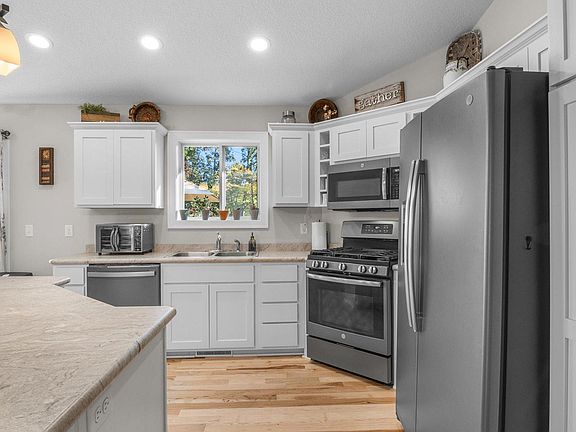 This stunning home combines modern elegance with natural beauty. Step inside to discover new hickory hardwood floors that flow seamlessly throughout the open concept living spaces, creating a warm and inviting atmosphere. Spacious living room boasts ample natural light, perfect for entertaining or relaxing with family. Adjacent to the dining area, enjoy picturesque views of the tranquil pond in your backyard—a serene retreat right at your doorstep. The master bedroom offers a spacious closet & en-suite bathroom, while four additional bedrooms provide plenty of space for family or guests. Each bedroom is thoughtfully designed, ensuring comfort and convenience for everyone. Large backyard has plenty of space for play, outdoor gatherings or quiet evenings on the patio. The surrounding vibrant community offers parks, shops, and dining just minutes away, making this the perfect blend of tranquility and accessibility.