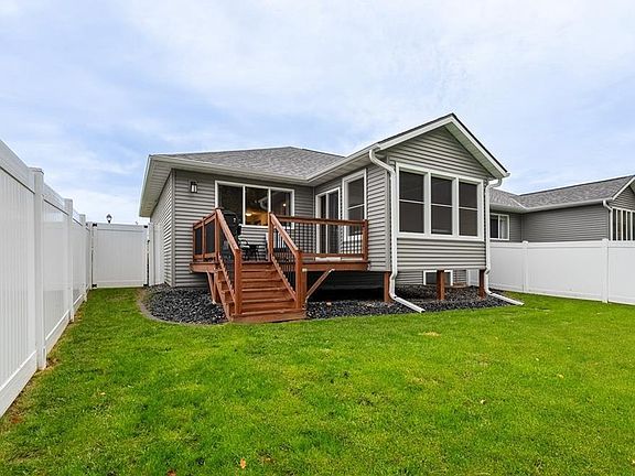 New Listing in Eau Claire! This 3 bed 3 bath GEM was built in 2023 and is ready for it's new owner. Major highlights include: Quiet & friendly neighborhood, Vinyl privacy fence in backyard, 3 season porch & finished deck, additional 10k of installation for sound barrier between common walls (very rare upgrade in twin homes!), large walk-in closet(s) (master & downstairs bedrooms). Recent upgrades include: quartz countertops in kitchen & ALL bathrooms upgraded plumbing fixtures, basement layout upgrades (door & hallway to provide separation), lighting fixtures downstairs (w/ lo dimmer), additional outlets to walls (mid-height) for mounted TV's, Upgraded LG appliances in kitchen + washer & dryer. There is no HOA fee. Nearby attractions include: Access to the Chippewa River & Dells Pond, Northwest Park, Riverview Park, Jeffers Park and everything else the North Crossing has to offer! Schedule your showing today! Buyers agent to verify all information.