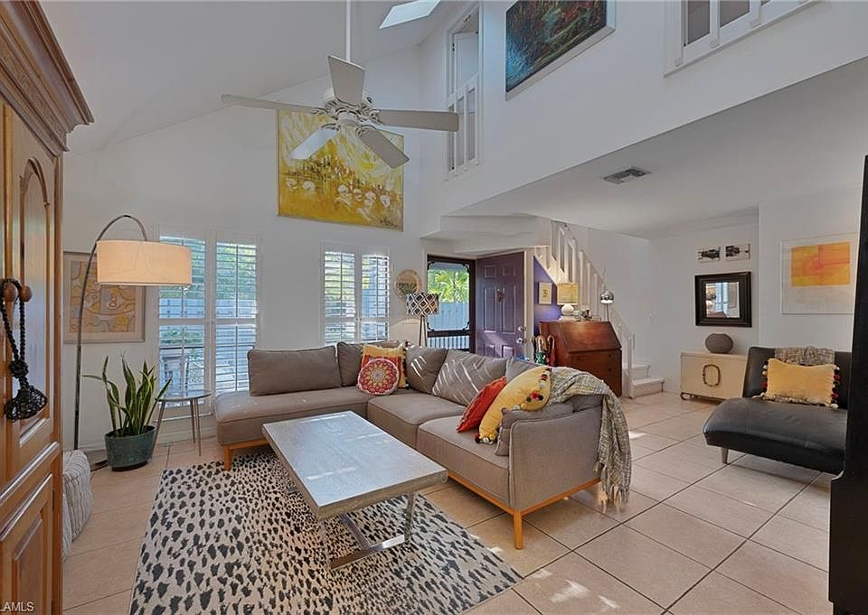 Discover your new home in vibrant Naples, where paradise awaits with a stunning community pool and serene lake views! This centrally located gem immerses you in a lush, botanical tropical environment, offering not one but two patios as your private oasis. Just minutes from the renowned white sand beaches, famous 5th Ave, Mercato, and Venetian Village, you’ll have countless dining options at your fingertips. Step inside to discover high vaulted ceilings and an open great room floor plan that seamlessly connects to the open dining area and a kitchen that is a chef’s delight. With two bedrooms on the first level and the Primary suite on the second level, this home perfectly balances space and style, making it your ideal haven in the heart of Naples!