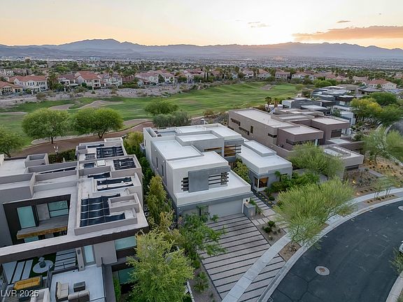 Experience luxury living in this stunning custom Blue Heron home, located in the exclusive gated community of Seven Hills Marquis and backing to the renowned Rio Secco Golf Course. This modern masterpiece offers 4 en-suite bedrooms, sleek European cabinetry, Wolf & Sub-Zero appliances, Lutron automated blinds, and a dramatic modern fireplace in the great room. Pocket doors open to a resort-style pool and spa, covered outdoor living space with fireplace, and a private putting green—perfect for entertaining. Take in 360-degree views of the Las Vegas Strip, golf course, and mountains from the expansive rooftop deck. A top-of-the-line media room features a Dolby Atmos 7.2.4 surround system, Epson laser projector, Anthem processor, AudioControl amps, and dual SVS subwoofers—delivering a true cinematic experience. Whole-home surround sound adds to the ambiance throughout. Every detail of this home blends high-end technology with sophisticated design for modern luxury living at its finest.