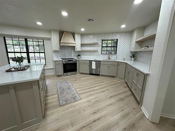 The custom kitchen is the heart of the home with brand-new appliances, stylish cabinetry, and plenty of counter space—perfect for cooking and entertaining. Each of the three full bathrooms has been fully renovated with modern tile, updated fixtures, and elegant finishes.