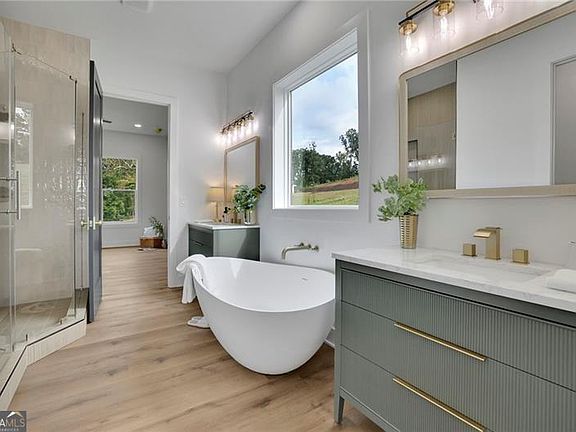 This newly built MODERN EUROPEAN FARMHOUSE with NO HOA is nestled on 2.55 ACRES of picturesque pasture with a CREEK lining the back. It is the perfect homestead, ready for horses, goats, chickens, a large garden or barn-whatever you can dream! Enjoy year-round ambience with INDOOR AND OUTDOOR FIREPLACES and a COVERED PATIO that extends living space with an outdoor television-perfect for gameday or watching family movies with a fire lit and open skies as a backdrop. The backyard is pool ready. And don't miss the charming tree swing! The MAIN-LEVEL PRIMARY SUITE feels like a retreat, complete with a custom accent wall, luxurious soaking tub, oversized glass shower with custom tile and dual rain and wall-mount showerheads, and a spacious walk-in closet. This thoughtfully designed 5-BEDROOM, 3.5-BATH offers a 4-CAR GARAGE and a stunning great room with 21-FOOT CEILINGS, dramatic two-story feature wall, and a gas-starter fireplace. The OPEN-CONCEPTis flooded with natural light from expansive windows, and the GOURMET KITCHEN showcases a large granite island, 6-burner gas range, stainless appliances, and abundant storage. A wet bar/back kitchen makes entertaining effortless, while the WALK-IN PANTRY, office/flex room, drop zone/mudroom, and conveniently located powder room perfectly finish the main level. The CUSTOM-BUILT STAIRCASE RAILINGS create a memorable focal point from the foyer to the catwalk above. Laundry is a breeze with three possible hookups, including one directly in the primary closet and one upstairs. And the LOCATION seals the deal: elementary school 4 minutes away, brand-new Cherokee County High School opening next fall, and MINUTES TO DOWNTOWN CANTON, BALL GROUND AND JASPER-all with cafes, boutiques, spas, and weekend events. Explore local wineries, golf courses, greenways, and Lake Allatoona. Head north to Ellijay and the mountains or visit Waleska and Reinhardt University just down the road. This property blends modern elegance and everyday functionality with breathtaking views. THERE'S NO PLACE LIKE HOME!