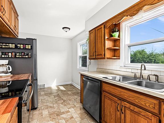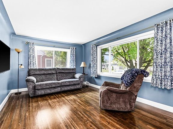 This charming home boasts extraordinary pride of ownership. Outside, you'll find maintenance free steel siding and a newer roof. Inside, you'll find refinished hardwood floors throughout the living room, hallways and bedrooms. The galley-style kitchen has all new flooring, new stainless stove, new fridge and new dishwasher. The updated bright bathroom has newer floors, fixtures, and a glass block window. The finished basement has a cozy recreation room to lounge, and a bonus office or den. Don't miss the large driveway and 2-car detached garage with a large lean-to shed. The partially fenced yard is level and open with a small raised garden. This is the perfect place to call home.