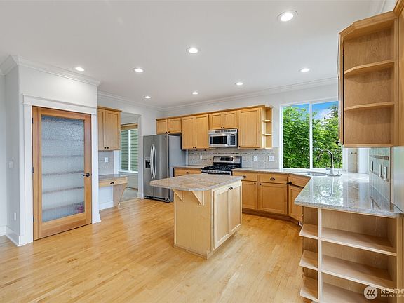Beautiful, stunning panoramic views of Lake Washington and the mountains. This home features big living area, dinning area, huge deck with views, stainless steel appliances, custom bookshelves. One bedroom downstairs perfect for an office or a playroom. Upstairs you will find your dream Primary suite with two huge walk-in Master closets and 5 piece updated bathroom. Two additional bedrooms with walk-in closets and a laundry room. Mechanics garage with large storage loft, cabinets, Tesla charger, as well as Solar panels on the roof. Located at dead end street with easy commute to freeways, Boeing, Bellevue and Seattle. This is definitely a must visit.