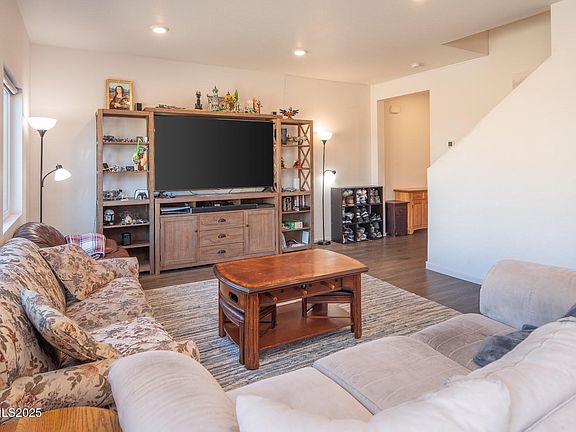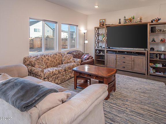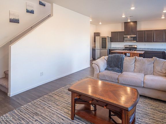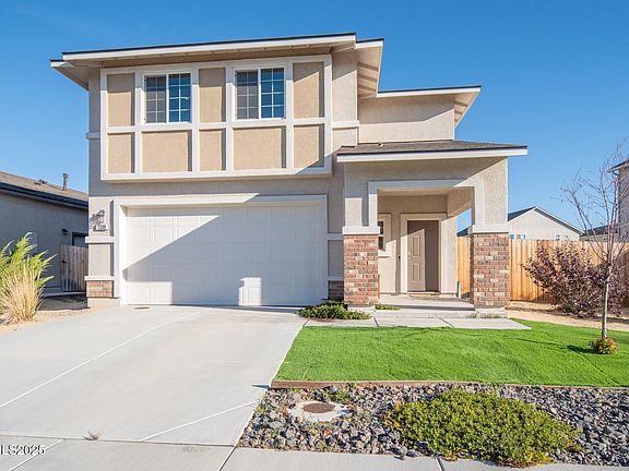 LOW MAINTENANCE SMART HOME BUILT IN 2020 ONLY A STONE'S THROW FROM THE KILEY LAKE WALKING PATHS! This modern home provides all the convenience of having systems less than five years old, including a new Bryant dual-zone air conditioner, new Bryant dual-zone furnace, new shingle roof, new Rinnai tankless water heater, new vinyl windows and sliders, new granite countertops, new cabinetry, and new smart home features! The main level offers a large open great room with continuous luxury vinyl plank flooring, 10-foot ceilings, recessed lighting and a convenient main level guest bathroom. The kitchen includes granite slab countertops, dark shaker-style cabinetry, a large step-in pantry with shelving and lighting, an LG side-by-side stainless steel refrigerator with tap window display, and stainless steel appliance package featuring a gas range/oven, over-the-range microwave, and dishwasher. Upstairs, the primary suite includes dual sinks, an extended glass shower, a large walk-in closet, and new low-profile Blindster pull-down blackout blinds. The laundry room is conveniently located upstairs next to the bedrooms providing convenient no stairs access. All bedrooms feature mountain views, and the northwest bedroom includes built-in shelving. The home is equipped with dual-zone HVAC for comfortable climate control on both levels. Smart home features include a Skybell wired video doorbell, Honeywell Home Smart Thermostat, IQ Smart Home Panel, keyless entry, media center panel, and a MyQ smart garage door opener system. The two-car garage provides direct kitchen and pantry access and is equipped with a LiftMaster side mounted opener which is quieter than a traditional ceiling mounted chain driven system AND frees up ceiling space for storage, etc. The south-facing lot is winter friendly, with snow melting quickly with minimal accumulation o the driveway. The landscaping is xeriscape and low maintenance, with artificial turf in the front yard, a covered patio with seating area, and a cleared backyard that serves as a blank slate for a future buyer. Mountain views are visible throughout the property and Kiley Ranch Lake and surrounding walkways are just out the front door! The home is centrally located for easy access to shopping, parks, and major commute routes. Raley's is approximately four minutes away (1.8 miles), WinCo five minutes (2.6 miles), Costco nine minutes (3.4 miles), Golden Eagle Park eight minutes (3.6 miles), Lazy 5 Park five minutes (1.8 miles), and the I-80 on-ramp about thirteen minutes (6.5 miles). Combining modern systems, smart home technology, efficient design, and a convenient location.