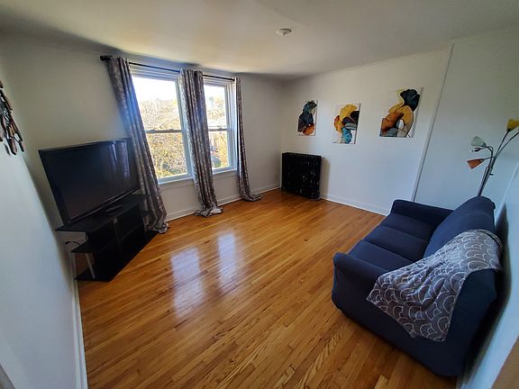 This fully updated apartment features hardwood floors throughout, modern appliances, an in-unit washer and dryer, and spacious walk-in closets.