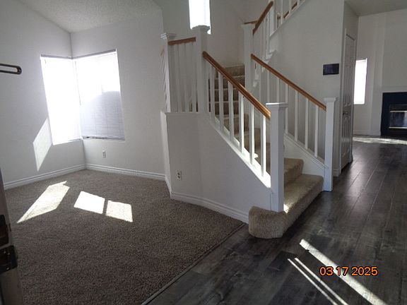 Cute and clean West Palmdale home in a great location close to Ocotillo Elementary School and easy freeway access. This home is 1823 sq. ft. and was built in 1989. The home has brand new interior paint, and downstairs carpeting. Formal living and dining room, open family room & breakfast nook with vinyl plank flooring. Modernized kitchen with custom cabinets and backsplash, granite counter tops, farm sink and cupboard pantry. Kitchen appliances include stainless steel stove/oven, dishwasher and side by side refrigerator. Interior laundry with gas hook ups. All bedrooms are upstairs with a spacious primary bedroom with a walk-in closet and a dual vanity in the bathroom. Huge custom stamped concrete patio area and covered patio for outdoor enjoyment. Vivant security system available at tenant cost. Pets are subject to owner approval with an additional pet deposit to be determined. Owner pays for WiFi and Trash Service. Owner requires a 625 or better FICO score. 6-month lease.