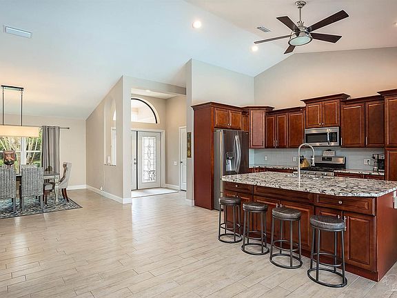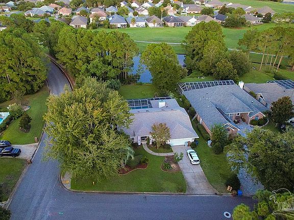 Contemporary retreat with enclosed pool, golf course views & pond in a prime Gulf Breeze location! Discover comfort, style, & convenience in this beautifully renovated single-story home, ideally located in the highly sought-after Champions Tee neighborhood of Tiger Point in Gulf Breeze. With approximately 2,073 square feet of thoughtfully designed living space, this 3-bedroom, 2-bathroom home offers the perfect blend of functionality & modern elegance. Set on a spacious 0.36-acre lot, the property backs directly onto the 13th tee box of Tiger Point golf course & a scenic pond, providing serene water & fairway views right from your backyard. The outdoor space is a true highlight, featuring a fully enclosed screened-in gunite pool (36' x 16' x 9') & large covered lanai that are perfect for year-round relaxation & entertaining, all surrounded by mature landscaping for added privacy & a partially fenced in back yard. Built in 1990, the home was fully remodeled in 2016 with major upgrades including: updated windows, upgraded attic insulation, electrical, plumbing, kitchen and bathrooms & full ductwork replacement. Additional recent upgrades include: architectural shingle roof (2021), hybrid water heater (2022), whole-house Generac natural gas generator (2022), aluminum hurricane panels for all windows, doors, & patio openings (2022). Inside, the large open floor plan delivers a bright and welcoming atmosphere with spacious living areas, while the attached 2-car garage includes a workbench for extra utility. Location highlights include: Top-rated Gulf Breeze schools; walk, bike, or take the golf cart to local parks, shopping, dining, and healthcare. Just minutes from Pensacola and Navarre Beaches, Pensacola State College - South Campus, airports, & military bases. This home checks every box - stylishly updated, ideally located, and full of desirable features both inside and out. Schedule your showing today!