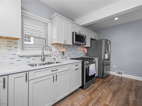 A charming and modern home awaits you in the highly sought-after Detroit Shoreway neighborhood on Cleveland's west side. This spacious property has been meticulously renovated from top to bottom, boasting high-end finishes and modern amenities for true turn-key living. It's ideally located just minutes from Edgewater Beach and Downtown Cleveland. Step inside to an open-concept first floor, flooded with natural light. It features luxury vinyl plank flooring, an amazing kitchen with new stainless steel appliances, and modern fixtures throughout, making it perfect for both everyday living and entertaining. The first floor also includes a full bathroom and laundry room combo. A large unfinished basement provides ample space for storage and utilities. Upstairs, you'll find all three bedrooms, a modern full bathroom, and fresh, neutral paint with contemporary touches throughout. The third floor offers a massive attic, ready to be finished into an additional bedroom or a creative space for work or leisure. Outside, enjoy your fenced-in backyard, complete with an oversized two-car garage and a patio area. With quick and unique access to Lake Erie and Edgewater Park and the new boathouse pavilion just moments away, you can enjoy waterfront strolls, breathtaking sunsets, and endless outdoor adventures, activity rentals, and summer programming now put on by Cleveland Metroparks. Close to the newest shops, top-rated restaurants, and vibrant nightlife are all within walking distance! This beautifully updated home in a prime location won't last long! Schedule your tour today!