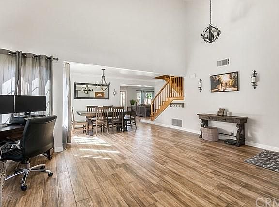 This wonderful house is Move In Ready! Enter the large living room with spacious dining area. Note the beautiful 6" x 18" wood grain tile flooring throughout the main level. Kitchen boasts gorgeous granite counters and a large, movable island which is perfect for parties! You'll appreciate the new dishwasher and new microwave. This lovely kitchen is open to the family room, which features a fireplace and a built-in desk area. You will enjoy loads of natural lighting in this home. The half bath is located near the attached garage, where you will find your laundry area. There are 3 bedrooms at the top of the oak staircase as well as a full hall bathroom. The master bedroom is extra roomy with double closets and a newly remodeled (fully gutted) master bathroom tucked behind barn doors for plenty of privacy. This oasis features a dual vanity, a soaking tub for relaxing and a large walk-in shower. Other recent upgrades include whole house repipe, replace HVAC, upgraded electrical with the addition of the fantastic spa. The concrete patio has an awesome alumawood solid cover, complete with fans and lights, and is equip for a television. The spa is on another raised concrete deck, complete with a wonderful pergola. This 7514 square foot lot is secure behind nice block walls and an iron fence/gate. There is space on the west side to park a small RV. Much attention has gone into the lushly landscaped planters in the front and back yards. Enjoy delicious fruit producing trees; grapefruit, orange, lemon. As well as beautiful flowering plants; roses, plumeria, etc. Healthy lawns and trees front and back. This home looks great at night with the landscape lighting. You will save money on your electric bill thanks to the solar panels which are tucked away above the patio cover.