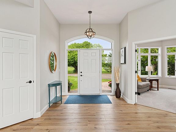 Lake front, Horse Stables, Fenced Pasture, Heated Shop, and 21 acres; if there were such thing as a Dream Property this is it! Welcome to this Custom-Built, walkout Rambler off Lake Cowley in Rogers. Thoughtfully designed with vaulted ceilings, a sunroom overlooking the backyard, and a dedicated home office space. The kitchen has upgraded features which include granite countertops, a tile backsplash, matching stainless steel appliances, and a large center island to gather around. On the Main Floor you will find the spacious, Primary Bedroom with Private Bathroom that includes a double vanity sink, tub, and walk-in shower. Enjoy Main Level Living with the Laundry Room located of the Main Floor as well. Downstairs you'll find two over-sized bedrooms, each include a walk in closet and built in vanity. Between each bedroom is a full bathroom with double vanity sink, tub, and walk in shower. Enjoy the wet-bar off the Family Room that has a walk out to the back patio. The outdoor space is magnificent. All the privacy one could wish for and lakefront that provides stunning sunset views off Lake Cowley. The 21 Acre lot holds a 64 x 27 Hay Tent and a 44 x 80 Heated and Insulated Pole Building containing a 44 x 47 Shop and six indoor horse stables, plumbed and ready for an additional bathroom to be added. Ask about future development options.