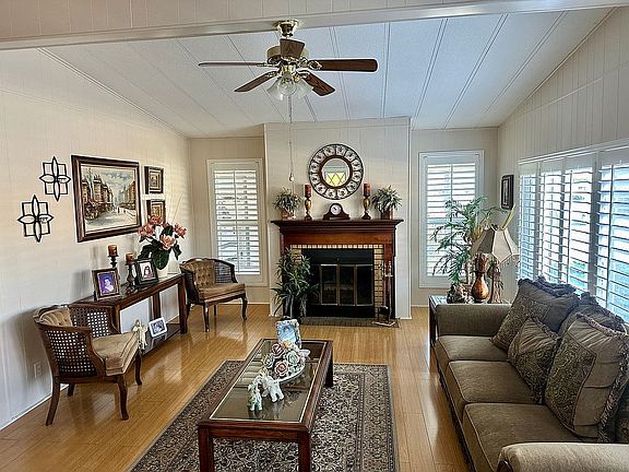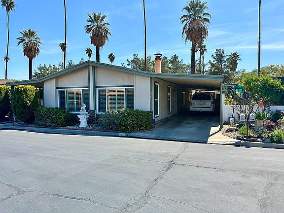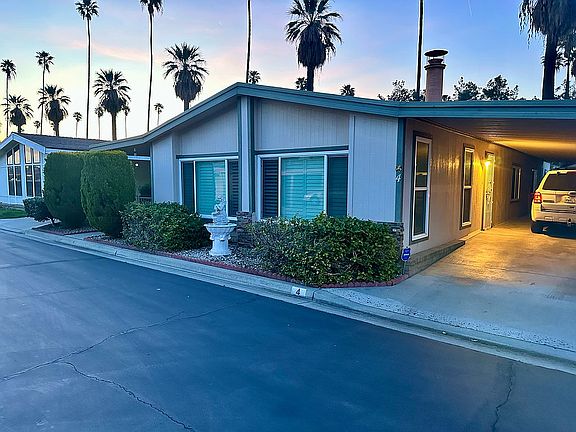 Welcome to Corona Palms Mobile Home Park a 55+ GATED community in which you will find tranquility. The park features a gated entrance with monitored security cameras, a newly remodeled common banquet room for activities, a quiet library, billiard room, sparkling pool and spa for your enjoyment. The manufacture home has been very well updated and remodeled and includes a long driveway/carport sure to fit 3 cars, and a storage shed with mini workshop area. Inside you will find newer laminate floors, a bright open concept with lots of natural light, remodeled kitchen with granite countertops and walking pantry, also a large breakfast area, a large Indoor laundry room with lots of storage cabinets and space for a second refrigerator. This home features front double door entry with a spacious front porch/seating area, huge formal living room with fireplace and a formal dining area, a large family room with a full service bar, huge master bedroom with walk in closet and attached master bath with double sinks a separate tub and shower, a 2nd bedroom and 2nd bathroom. Plenty of room for relaxing here! Home also features newly updated vinyl windows and glass sliding door and all windows with plantation shutters, skylight, central AC, furnace, automatic sprinklers and a covered patio. Home is also available with all furnishings included for an additional cost. What are you waiting for? Come make this property yours today!