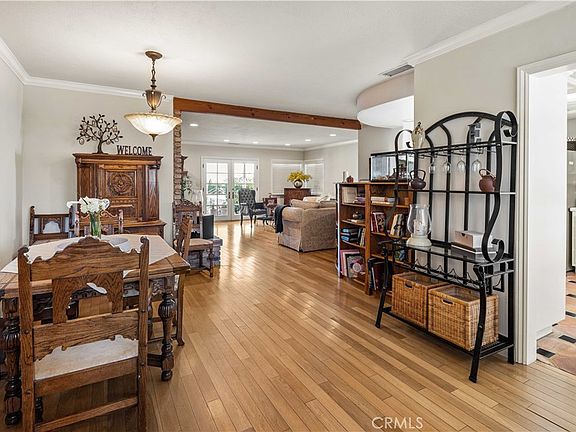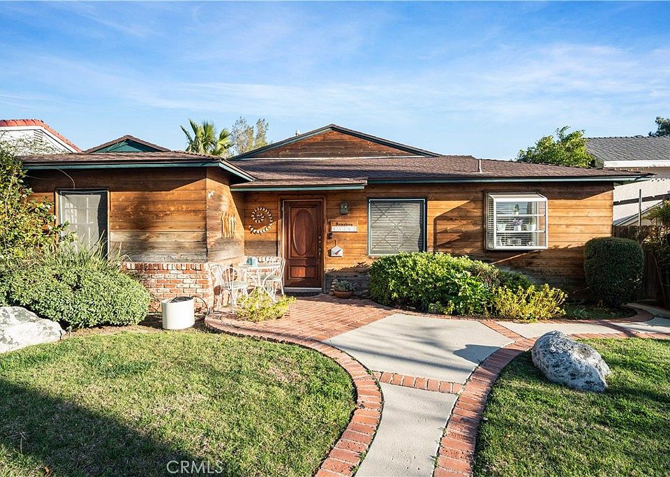 Discover this stunning single-story home, featuring a spacious detached garage thoughtfully converted into a versatile guest retreat—perfect for extended family, a potential rental opportunity, or additional living space. This beautifully designed home is filled with abundant natural light and offers an open kitchen with ample counter space, abundant cabinetry, a built-in seating area, and convenient access to the washer and dryer, all while providing scenic views of the lush front greenery through a bay window. The inviting dining area is perfect for gatherings, while the spacious living room boasts a gorgeous brick fireplace, recessed lighting, and elegant French doors that open to the backyard. A bonus room with a skylight serves as the perfect space for a home office, gym, or creative studio. The primary suite features its own en-suite bathroom with a standing shower, complemented by two additional bedrooms equipped with ceiling fans for added comfort. Elegant crown molding also adds a touch of sophistication. The detached garage conversion offers a private entrance and includes a full living area, kitchen, and a ¾ bathroom with a standing shower, making it an ideal guest house or potential rental unit. Sitting on a large lot with alley access, this property provides ample space and convenience. Best of all, there are no HOA or Mello Roos! This exceptional home blends comfort, style, and versatility—don’t miss the opportunity to make it your own!