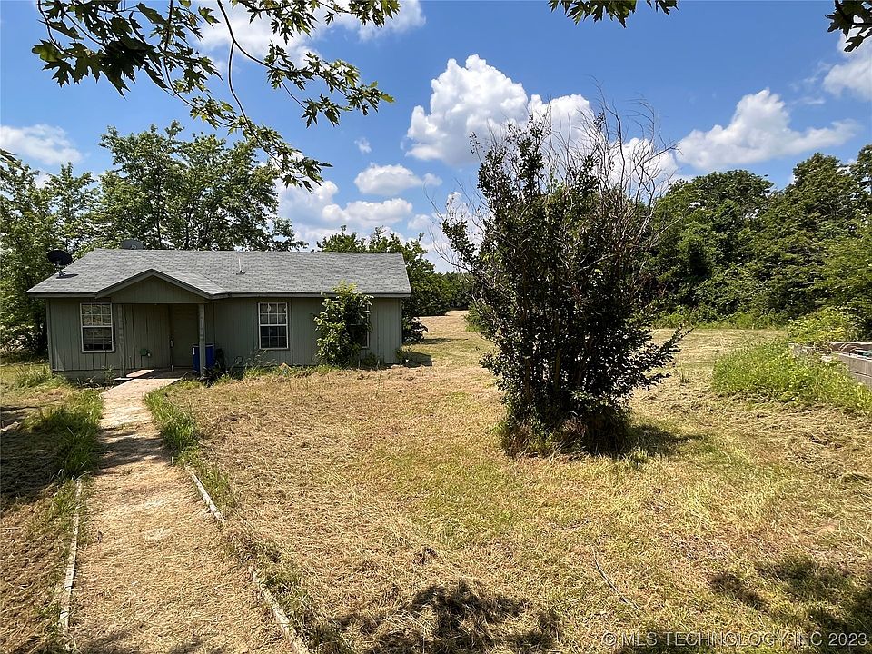 Enjoy the drive home everyday to your beautiful 10 acres and home. This property is perfect for full time living or a weekend retreat. The 864 sq ft house features two bedrooms, one bathroom, with an open kitchen and combo living/dining space. The rolling meadows are landscaped with beautiful wild flowers mature trees, abundant wildlife and also includes a pond! 8x20 metal storage container stays. Less than 10 miles to Ft. Gibson lake & even closer to Neosho River. Perfect location to invest into and build your dream home. Selling AS IS