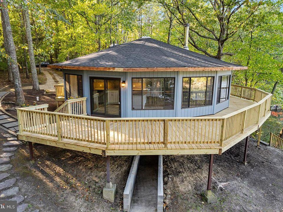 Unique 1977 Rondesics R-15 Model with Chalet Roof offers mid-century round house architecture, with total privacy on the very protected Brooks Cove near Solomons. This 3BR/2BA waterfront home is the perfect retreat and the offering includes an extra waterfront lot, totaling 400 ft of shoreline with a deep water pier-great for boaters, crabbing and fishing. Recent renovation highlights include a new roof, new flooring, fresh paint, brand new kitchen and bathrooms with custom tile. We adore the original Norwegian 'Jotul Combifire 1' (educated guess) wood stove!! An expansive deck provides multi-zoned outdoor living, for multi-season enjoyment. The window placements in the home provide abundant natural light and 180 degree cove views. Surrounded by wildlife including osprey and bald eagles, this move-in ready and low maintenance waterfront retreat is just 75 minutes from DC, and a short boat ride to Solomons Island and your favorite destination!