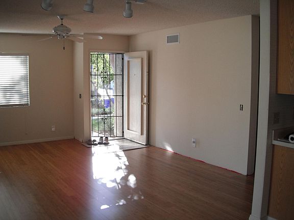 Two bedroom, two bath condo, Master bedroom has large walk-in closet. Includes kitchen appliances, central A/C, ceiling fans, fireplace, hook-up for washer/dryer(not included) in attached laundry room, detached 2 car garage, and nice sized fenced private patio and grass lawn. Gated swimming pool and spa in complex. NO SMOKING on premises. Prefer no pets, but will consider small well trained pet. This end unit Country View Condominium is located in the award winning Poway Unified School District. Exclusive fenced yard, very private. Spacious living room, with beautiful hardwood floors throughout unit, kitchen with major appliances included. Very large Master Bedroom with large walk-in closet. Plenty of closet space, New Windows throughout unit, features ceiling fans, fireplace, A/C, Washer/Dryer hook-up, Detached 2 car garage, Community Pool/Spa, close to shopping and Hillary Park. Bathrooms with new Shower/Tub enclosures. Owner pays H.O.A. fees which include sewer, water and weekly trash removal. Tenant responsible for gas & electric and other utilities. Lease 6 month period, then on a month to month basis.