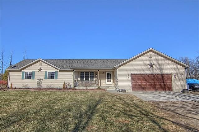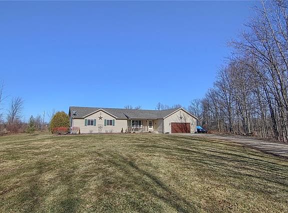 GORGEOUS SPRAWLING RANCH OVER 10 ACRES. THIS IS COUNTRY LIVING AT ITS FINEST. LIVING ROOM WITH LARGE PICTURE WINDOW FOR AMPLE NATURAL LIGHT, AND BEAUTIFUL FLOORING. STUNNING KITCHEN WITH GRANITE COUNTERS, BEAUTIFUL STONE BACK SPLASH, LARGE BREAKFAST NOOK, AND DOOR WALL TO BACK YARD. KITCHEN FLOWS INTO FAMILY ROOM WITH NATURAL FIREPLACE. MASTER SUITE WITH WALK IN CLOSET AND MASTER BATHROOM. TWO ADDITIONAL SPACIOUS BEDROOMS, AND TWO ADDITIONAL LARGE BATHROOMS ON FIRST FLOOR. HUGE FINISHED BASEMENT WITH PLENTY OF ROOM TO ENTERTAIN, AND PLENTY OF STORAGE SPACE. COVERED PORCH OFF OF SIDE OF HOME, AND DOOR WALL FROM BREAKFAST NOOK TO LARGE BACKYARD! FIRST FLOOR LAUNDRY. 2 CAR ATTACHED GARAGE. ONE YEAR HOME WARRANTY OFFERED BY SELLER. DON'T MISS OUT ON THIS ONE OF A KIND HOME.