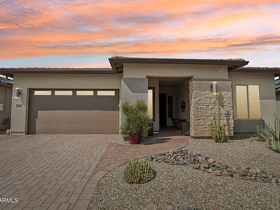 This 2023 Built SOLAR (Owned 10KW System- Electric Bill are less than $10) Concentric is Remarkable - You'll Notice the Pride in Ownership Immediately w/ the gorgeous curb appeal - PAVER DRIVE & Walkway coupled w/ the STONE ACCENTS & beautifully maintained desert landscaping is very inviting! Step inside & enjoy the LIGHT & BRIGHT expansive OPEN PLAN that's PRISTINE! Enjoy an abundance of NATURAL LIGHT w/ oversized windows & the SONORAN DESERT VIEWS are STUNNING!! High-end WOOD-LOOK TILE in all the right areas! The Chef's KITCHEN features; DESIGNER CABINETS w/ larger CROWN MOLDING, soft close drawers/doors & ROLL-OUT Shelving, Contemporary QUARTZ c-tops w/ a CUSTOM BACKSPLASH & SS BUILT-IN GAS APPLIANCES w/ SS HOOD VENT! Both BATHS are UPGRADED to the HILT w/ CUSTOM TILE and Quartz c-tops Enjoy a separate Den & 3rd Bedroom for all your needs!! Step Outside to extreme PRIVACY (Fully Fenced) & lovely grounds highlighted by an EXTENDED TRAVERTINE PATIO, BUILT-IN BBQ, GAS FIRE PIT w/ decorative bench, PERGOLA & a Custom WATER FEATURE w/ the most soothing sounds is the perfect touch to enjoy the natural setting!! The Garage is remarkable - DEEPER & WIDER than most, TEMP CONTROLLED, Storage Racks & EPOXY FLOORS. Add'l Upgrades: Laundry Room w/ Sink & Cabinetry, Soft Water & RO, Surround Sound, Add'l Can Lighting, High-end lighting & fans, 5 custom trellises on the side yard, garbage enclosure w/ garage service door, CUSTOM front screen door - this home is absolutely loaded w/ upgrades & feels like a new home!! Don't miss this incredible opportunity to call this your home!!