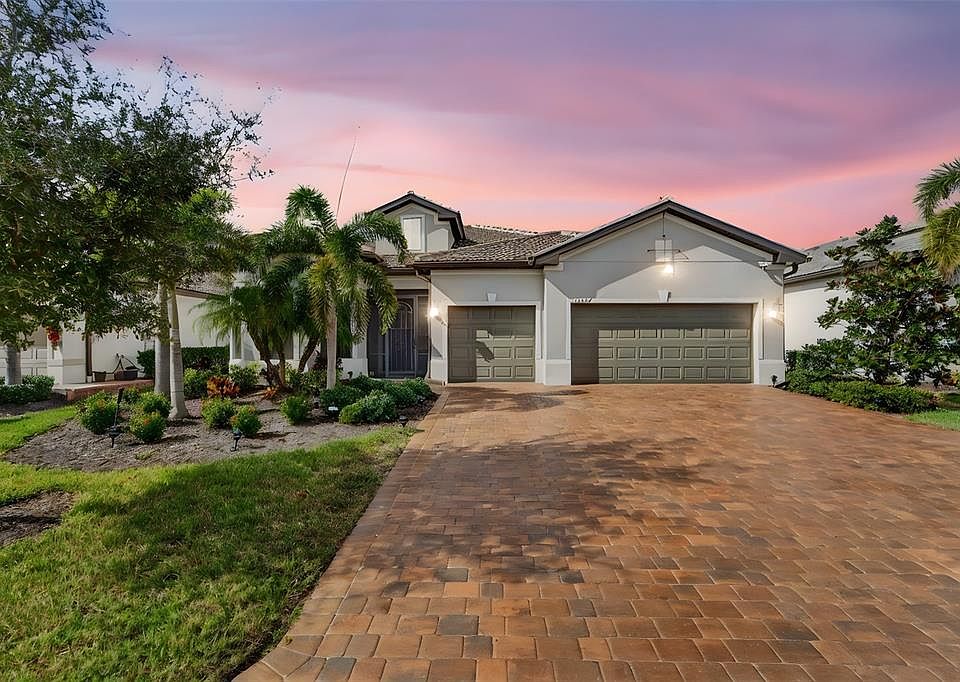 THIS HOME IS A MUST SEE! Absolutely stunning and exceptionally welcoming, this custom-designed, meticulously maintained, move-in-ready residence is located in the gated, resort-style community of IslandWalk at the West Villages, one of Venice’s most desirable neighborhoods offering exceptional amenities and an active Florida lifestyle. This spacious 3-bedroom plus office/den, 3-bath, 3-car garage single-family home features 2,855 square feet of thoughtfully designed living space and was built in 2019 with quality, comfort, and attention to detail in mind. The inviting open floor plan is filled with abundant natural light, generous room sizes, and open sightlines that create a warm and welcoming atmosphere. The expansive living and dining areas flow seamlessly to the extra-large screened lanai overlooking a tranquil lake, providing the perfect setting for relaxing, entertaining, and enjoying Florida’s beautiful weather and stunning sunset views. The gourmet kitchen is beautifully appointed with tall real-wood cabinetry, built-in oven, stylish cooktop, KitchenAid appliances, and a walk-in pantry with custom gray built-in shelving offering exceptional storage and organization. The primary suite is a private retreat featuring a spa-like ensuite bath with walk-in shower and ample custom closet space. Two additional bedrooms and two full baths provide flexibility for guests or family. A generously sized office/den with abundant natural light offers versatility for working from home, study, or creative use. The designer laundry room includes custom cabinetry, expansive counter space, and outstanding organization—making everyday tasks effortless. Additional highlights include tile flooring throughout the living areas, kitchen, bathrooms, office, and laundry room, with quality engineered hardwood flooring in all bedrooms. The home also features impact windows throughout, electric hurricane shutters on the lanai, elegant coffered ceilings in the living room, tray ceilings in the primary bedroom, office, and one guest bedroom, crown molding throughout, and a beautifully sealed paver driveway enhancing curb appeal. The spacious 3-car garage offers room for multiple vehicles, a golf cart, or extra storage. Residents of IslandWalk at the West Villages enjoy access to two resort-style amenity centers, featuring grand clubhouses, resort and lap pools, two hot tubs, fitness centers, 12 pickleball courts, 8 tennis courts, bocce courts, basketball court, walking and biking trails, waterfront parks, dog park, playground, community garden, nature preserve, and a vibrant calendar of social activities. Ideally located just minutes from world-famous Gulf beaches, shopping, dining, entertainment, medical facilities, and top-rated schools. The home is also conveniently close to Wellen Park, Venice’s beautifully designed new downtown destination offering upscale dining, boutique shopping, entertainment, waterfront spaces, and year-round community events. This stunning home shows like a model and offers an exceptional Florida lifestyle. Everything you’ve been searching for is right here. Schedule your private showing today—and be sure to explore the 3D tour and video!