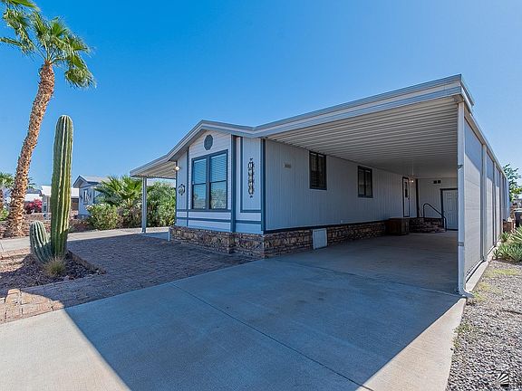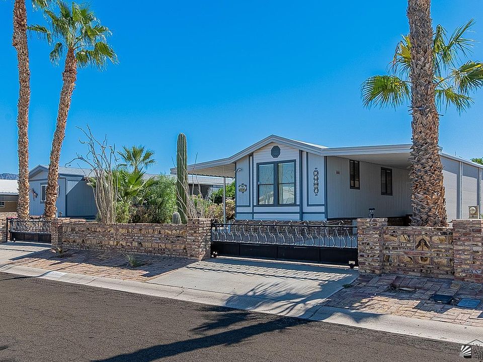 Experience effortless desert living in this beautifully maintained three-bedroom, two-bath home with a versatile casita, ideally located in the desirable Yuma Foothills. The main residence is fully furnished with new carpeting (2025), washer and dryer, HVAC (2022), storage shed, and a covered, shaded carport. Enjoy the expansive patio, mature fruit trees (orange and grapefruit) with drip irrigation, and RV gate access with full hookups. The casita features its own bathroom and additional living space, perfect as a guest suite, hobby room, or private office. Take in the peaceful mountain views from your private outdoor oasis. This home is truly move-in ready—just bring your toothbrush! Shed in the back is included. The shed in the front does not convey.