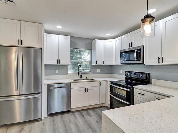 One or more photo(s) has been virtually staged. Feast your eyes on this totally renovated home. The seller has spared no expense in making it perfect for the future homeowner. The kitchen boasts new white solid wood cabinets and quartz countertops. The bathrooms look like they are in a model home. Upgraded ceiling fans in all the rooms. All new doors and hardware. Luxury vinyl plank floors throughout the house. No need for a vacuum cleaner. Freshly painted interior and exterior. Enjoy the large fenced backyard. Bring your fussiest buyers and let them see what luxury looks like.
