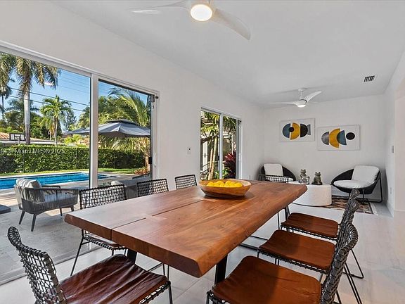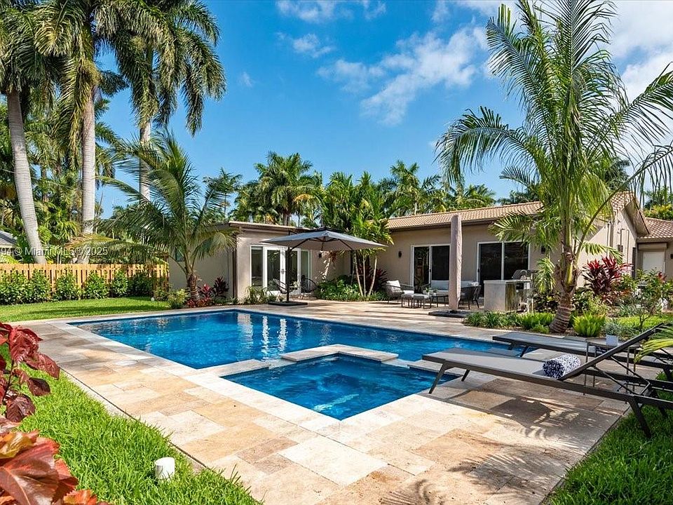 Framed by breathtaking, professionally designed landscaping, this 2,700 sq ft custom residence in the highly desirable Hollywood Lakes neighborhood is truly one of a kind. Rebuilt with designer-appointed finishes, it offers 4 bedrooms and 4 baths, highlighted by large-format porcelain floors and custom double frosted entry doors. The chef’s kitchen features wood cabinetry, quartz countertops, breakfast bar, and premium stainless appliances including a 5-burner gas range. The primary suite opens to a heated pool with spa, travertine deck, and full outdoor kitchen for seamless entertaining. With oversized mechanical systems, a Florida room, and every detail carefully curated, this home is both elegant and inviting.