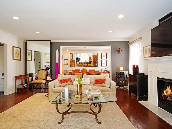 Welcome to your private beautifully appointed, fully updated 1 level home with a charming front porch and a nice large back yard with room to add an ADU or garage conversion. TANKLESS hot water heater and Ring door bell. Featuring gorgeous chocolate hardwood floors a large living room with warming fireplace and a beautiful dining room for big family dinners. The kitchen has custom white cabinetry, stainless steel appliances and a nice breakfast area. There is a Large master suite with a lovely master bathroom featuring a huge JACUZZI bathtub and separate shower fit for a queen. 2 large additional bedrooms share a bathroom and one of the bedrooms in the rear of this lovely home has french doors opening out to a nice elevated deck, perfect for outdoor dining. Located in close proximity to all of LA's best restaurants and shopping.