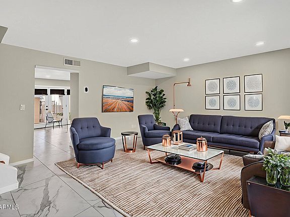 Originally built in 1966 and thoughtfully updated, this 1,584 sq. ft. townhome offers the perfect blend of character and modern convenience. With 4 full bedrooms and two and a half bathrooms, the floor plan provides both functionality and flexibility—ideal for families, roommates, or investors. Set within a lush, maturely landscaped community near Arcadia, Scottsdale, Tempe and Downtown Phoenix, this home feels like an oasis in the city. The setting is made even better with its location directly across from the community pool. Inside, you'll find generous family and dining spaces paired with an upgraded GE appliance package and a full-size Maytag washer and dryer. Improved also by having the windows changed to new low-E. With a private courtyard patio that extends the living space.