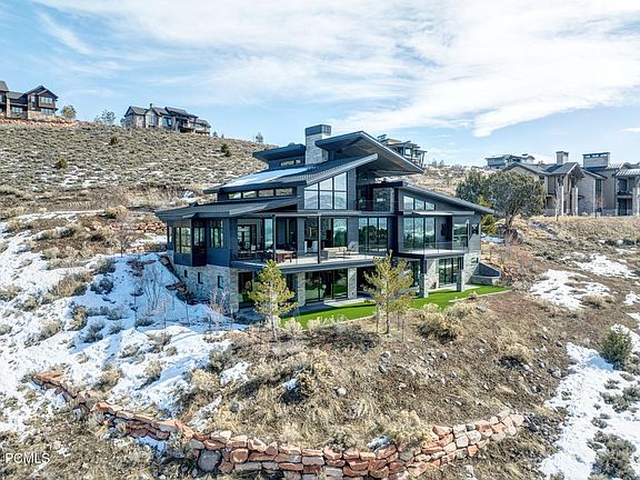 A Full golf membership complements this mountain modern architectural masterpiece! Designed by leading Utah modernist arcitect Richard McCann, this home features soaring ceilings. expansive decks on all three stories and one of the most spectacular master suites in the Wasatch back. Four extra spacious bedrooms with en-suite bathrooms are further bolstered by a bonus bunk room and fifth bathroom. The chef's kitchen with premier appliances is surrounded by Gioia marble that sparkles beyond the brightest Carrana marble. Downstairs windows are 9' tall, giving the full effect of a main floor view. Enjoy all four seasons in the in-ground, weather-protected hot tub that offers the best spa view in all of Utah. the home-sited on 1.15 ultra-private acres with 75'+ setbacks to homes on either side - is purposely designed to showcase panoramic views of the Wasatch mountains, from Deer Valley to the Sundance ski resorts, and beyond. Enjoy all-season activities including the top-rating private golf course in Utah, 12 minutes to skiing at the Deer Crest Club located within the St. Regis at Deer Valley hotel, and a nationally recognized tennis & pickle ball program.