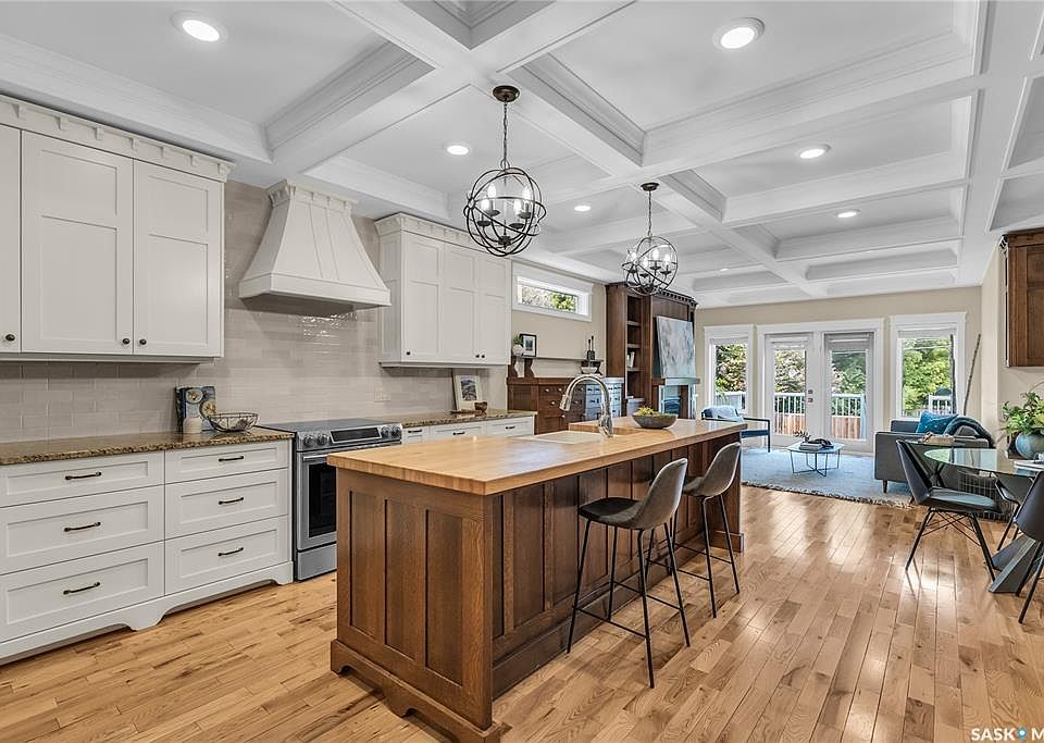 Welcome to 1339 Osler Street, an exceptional home located in one of Saskatoon’s most desirable neighborhoods—Varsity View. Just a one-minute walk from the University of Saskatchewan, this 2,153 sq. ft. infill, built in 2014, blends timeless elegance with modern luxury. The main and second floors feature rich hardwood throughout, complemented by coffered ceilings and a cozy natural gas fireplace on the main level. Upstairs, you’ll find three spacious bedrooms, including a luxurious primary suite with a walk-in closet and a stunning tiled 5-piece ensuite. A bright, south-facing bonus room offers a perfect retreat or home office space, flooded with natural light. The home also boasts a legal 1-bedroom, 1-bathroom basement suite with 9-foot ceilings and in-floor heating—ideal for rental income or extended family. Additional highlights include in-floor heat in the attached garage, a beautiful zero maintenance backyard with a large deck, new fence, and low-maintenance artificial turf. With three rear parking spots—perfect for tenants or U of S students—and potential for a future garage, this home is as functional as it is stylish. Recent 2025 upgrades include a new kitchen backsplash, brand new carpet, and fresh paint throughout. Don’t miss this rare opportunity to own a high-end property in a prime Varsity View location.